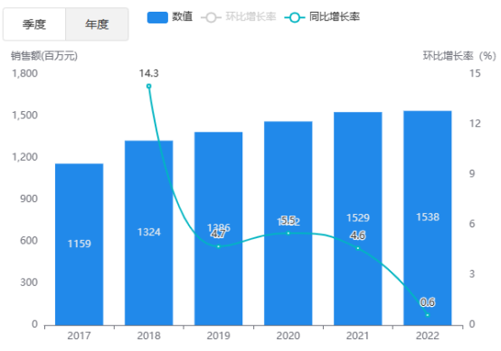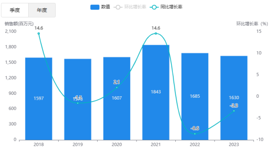 事实上,目前国内获得阿司匹林肠溶片生产批文的企业早已超200家,而在国内阿司匹林市场中,拜耳占据了主导地位。据中康开思数据显示,近年来阿司匹林肠溶片在全国等级医院的销售额均在10亿元以上。其中,2022年等级医院销售为15.38亿元,拜耳占据95.79%市场份额;2022年零售渠道销售为16.85亿元,拜耳占据70%的市场份额;2022年等级医院及零售市场的销售额超32亿。