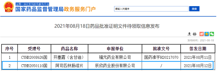 此外,还有仁合益康、吉林四环制药、江苏必易生物科技等10家企业提交了阿司匹林肠溶片的仿制申请,均在审评审批中。