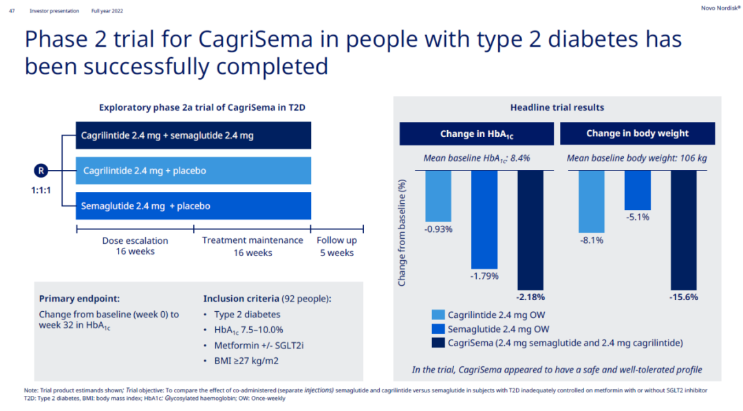 ▲CagriSema在2期临床试验中的疗效结果(图片来源:诺和诺德官网)
