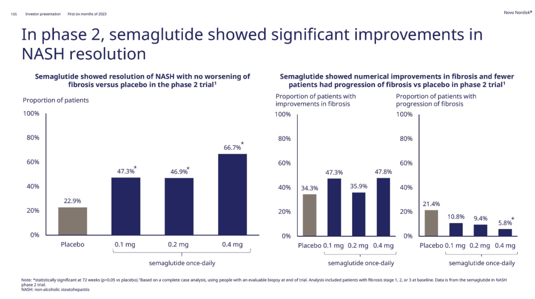 ▲司美格鲁肽治疗NASH患者的2期临床结果(图片来源:诺和诺德官网)