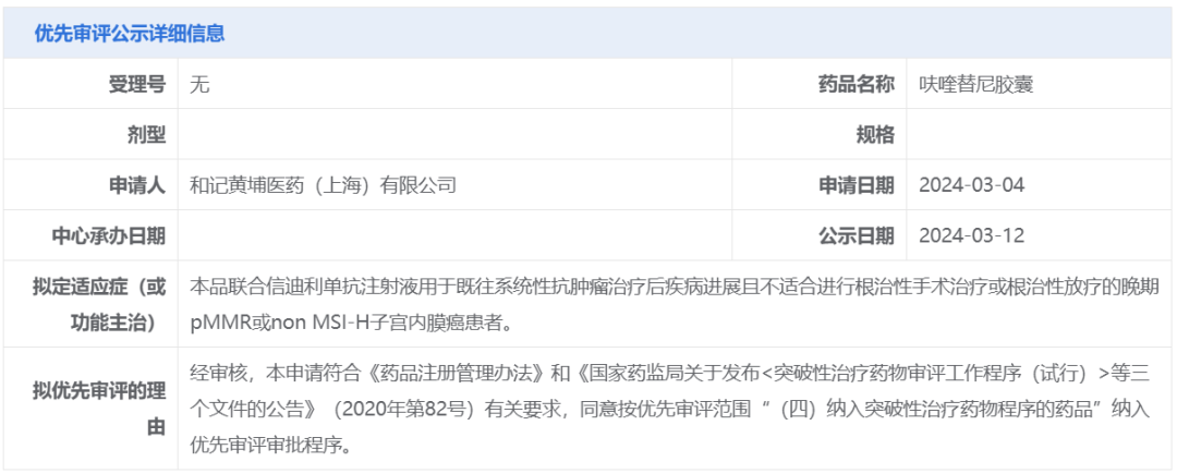 今日(3月12日),中国国家药监局药品审评中心(CDE)官网最新公示,信达生物PD-1抑制剂信迪利单抗与和黄医药VEGFR抑制剂呋喹替尼的联合疗法申请拟纳入优先审评,拟用于既往系统性抗肿瘤治疗后疾病进展且不适合进行根治性手术治疗或根治性放疗的晚期pMMR或non MSI-H子宫内膜癌患者。公开资料显示,信达生物与和黄医药曾在2018年达成合作,开展信迪利单抗与呋喹替尼用于实体瘤联合治疗的研究。