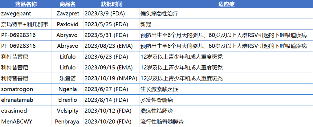 2023年的辉瑞并不缺乏高光时刻。新产品方面,它共有9个新分子实体获批上市,要知道,FDA去年批准的新药也就50余款。