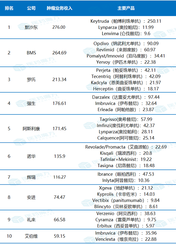 5、2023年全球制药巨头肿瘤业务排名TOP10;医药魔方