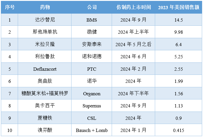 2024年失去美国独家经营权的十款产品