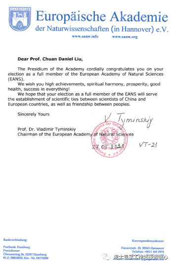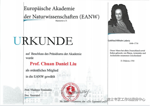 在今年近期欧洲自然科学院外籍院士(Europaische Akademie der Naturwissenschaften)公布的名单上,科林利康医学研究公司董事长兼首席科学官刘川博士荣获欧洲自然科学院外籍院士,并收到欧洲自然科学院院长Vladimir Tyminskiy教授亲自签署的刘川博士当选欧洲自然科学院外籍院士的院士证书并向他发来了贺信和象征院士荣誉的欧洲自然科学院徽章!此次当选是国际科技界对刘川博士在推动药物临床试验技术发展、促进中国GCP规范提高与临床试验实践相结合取得的重要成就的充分肯定,也是对他多年来致力于临床试验方法学教育与培训、临床试验项目规范运营管理产业转化和实施的高度认可。