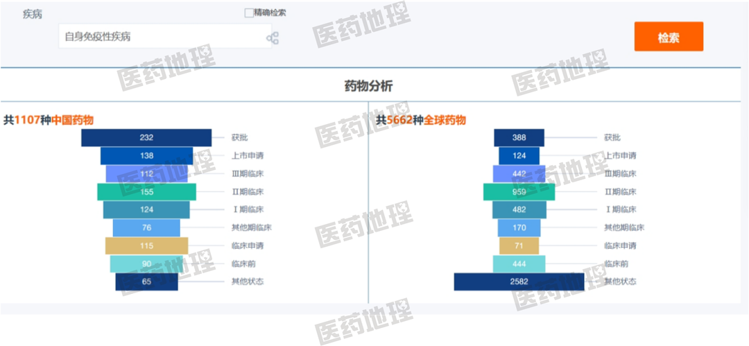 自身免疫性疾病研发地图 数据来源:Pharma ONE智能药物大数据分析平台