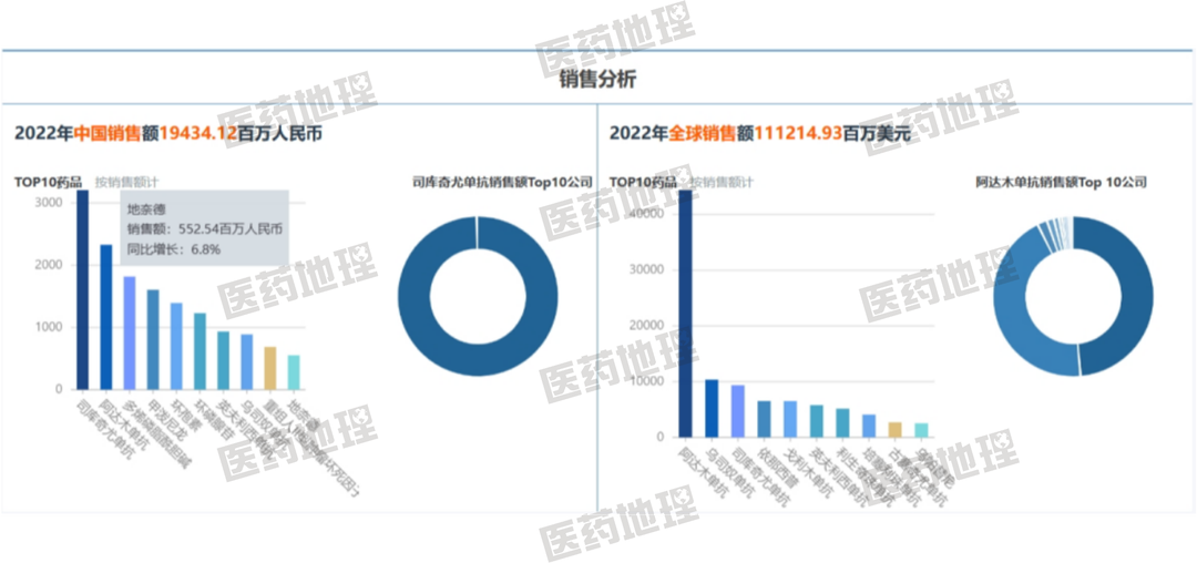 国内以及全球2022年银屑病销售分析 数据来源:Pharma ONE智能药物大数据分析平台