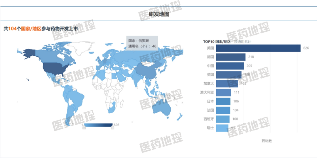 银屑病全球研发地图 数据来源:Pharma ONE智能药物大数据分析平台