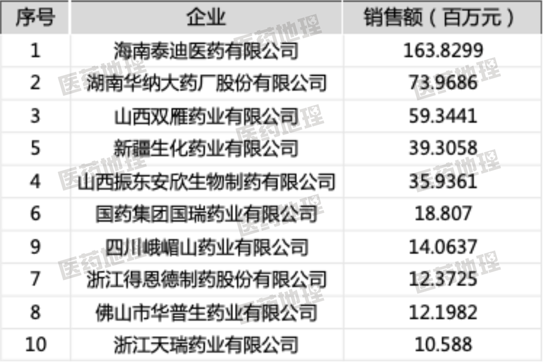 萎缩性胃炎销售情况表 数据来源:Pharma ONE智能药物大数据分析平台