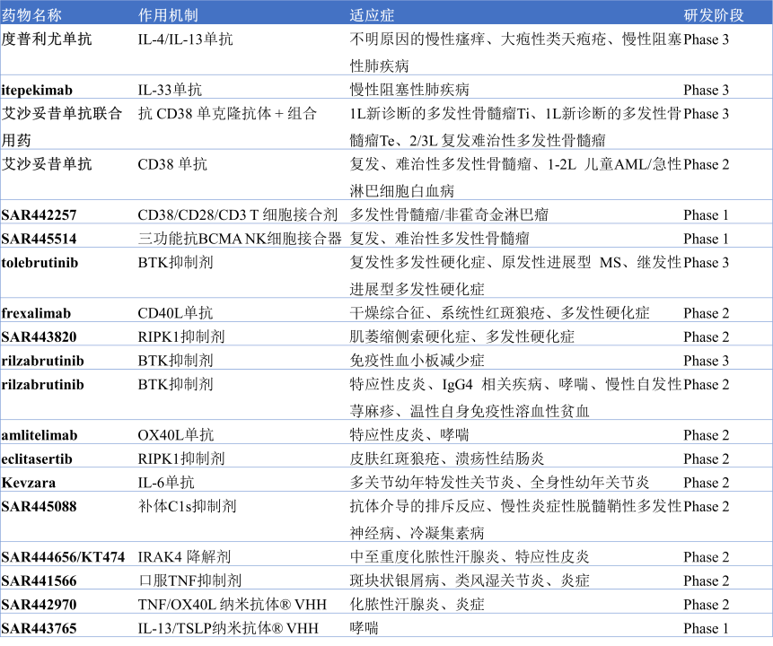 2023年底,赛诺菲召开全球投资者研发日,一展当前管线梯队。有消息指出,其中约有12款新分子实体有望成为重磅炸弹,其中有9款针对自免疾病,其靶点包括OX40、IRAK降解、CD40L、TL1A、IL33、BTK等,实力不容小觑。有业内观点指出,按照此发展趋势,或许在3年内赛诺菲将超越艾伯维和强生在自免赛道称王。