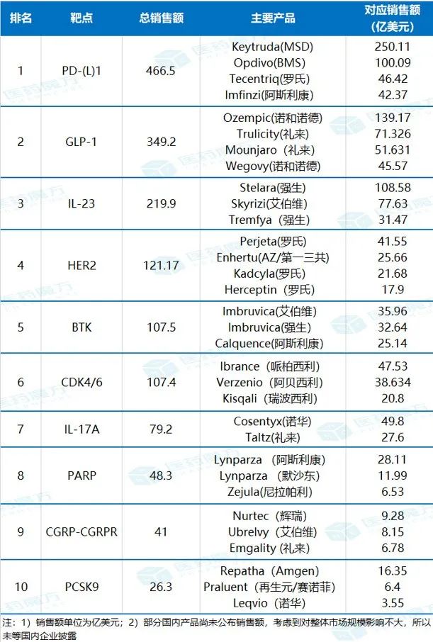 然而,一个好的药物靶点的开发成功与否,不但要看能否获得优异的临床数据,也要依据其能否实现商业化价值。2023年外资企业财报披露基本结束,各大热门靶点药物的销售额也基本披露完毕,接下来,我们一起看看2023年,10大热门靶点新药的市场表现情况。