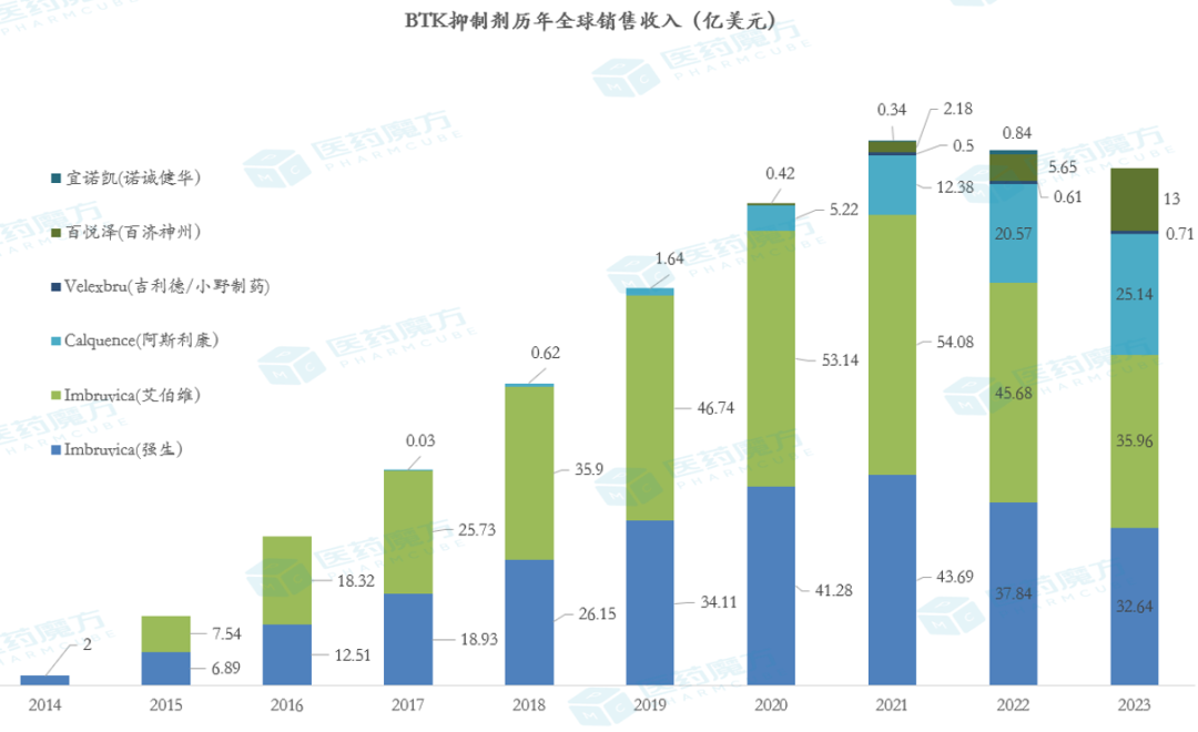自全球首款BTK抑制剂上市已经过去了9个年头,对于创新药来说,其整体市场规模已经趋于稳定。不过在这一赛道,中国创新药行业在2023年却迎来了令人激动的消息——中国首款10亿美元分子诞生了!