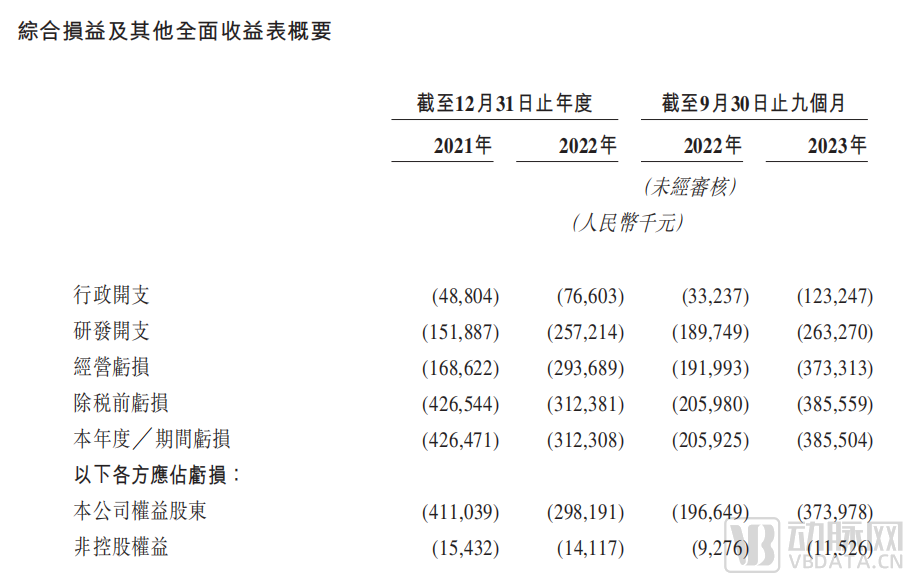 招股书显示,目前荃信生物未有营业收入。不过,相应的研发开支从1.52亿增长到2.57亿元人民币的同时,净亏损从4.26亿降低到3.12亿元人民币。2023年9个月亏损净额有所上升,主要源自于其2022年10月授出的额外股权激励令员工成本增加,同时随着管线临床试验推进,CRO及实验场所的参与成本增加。