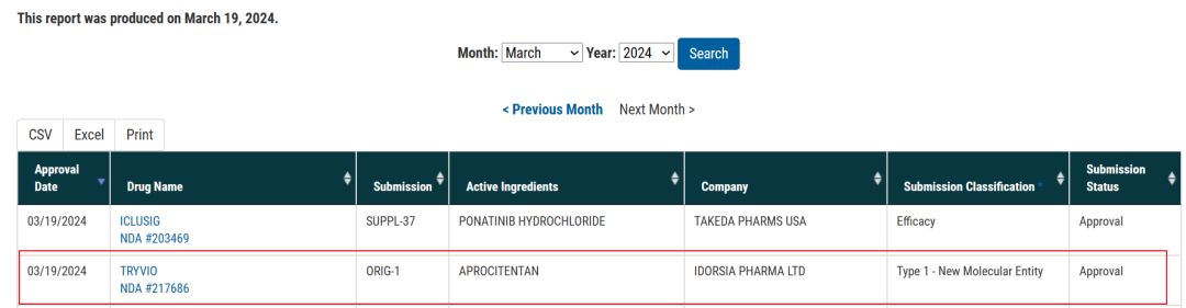 3月19日,FDA官网显示,Idorsia开发的Aprocitentan(商品名Tryvio)获批上市,用于治疗难治性高血压患者。