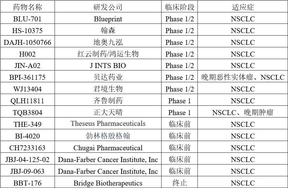 除此之外,临床上还有很多在研的四代EGFR抑制剂(表1),如贝达药业的BPI-361175,其靶向EGFR C797S 等突变的四代EGFR抑制剂,于2021年2月25日获批临床。