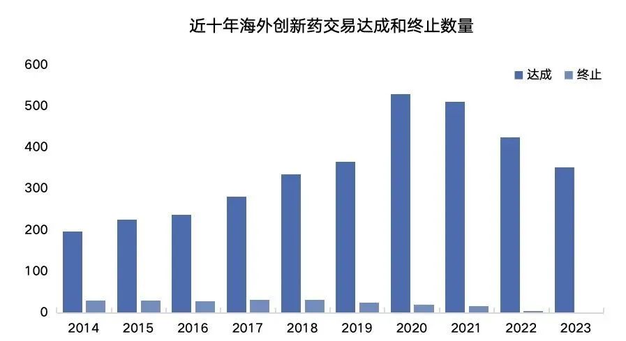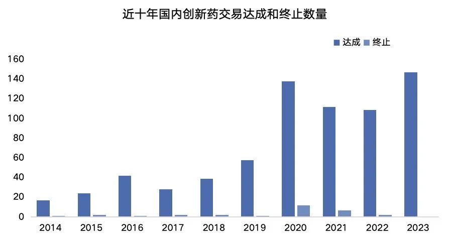 注:“终止”数量是对当年达成的交易截至2023年底时已经终止的统计
