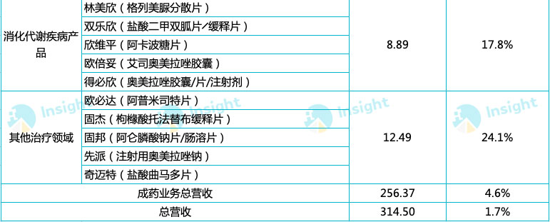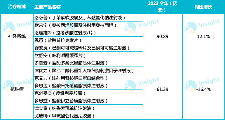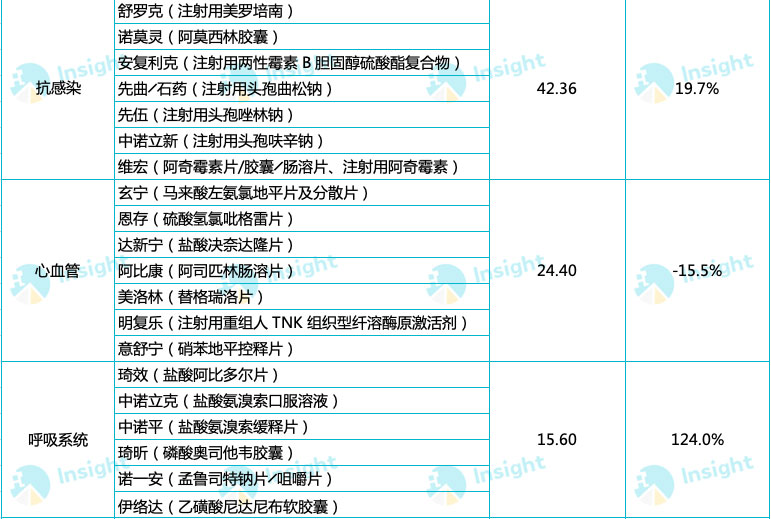 抗感染和呼吸系统领域则不逊神经领域,有着 19.7% 和 124.0% 的高增长。