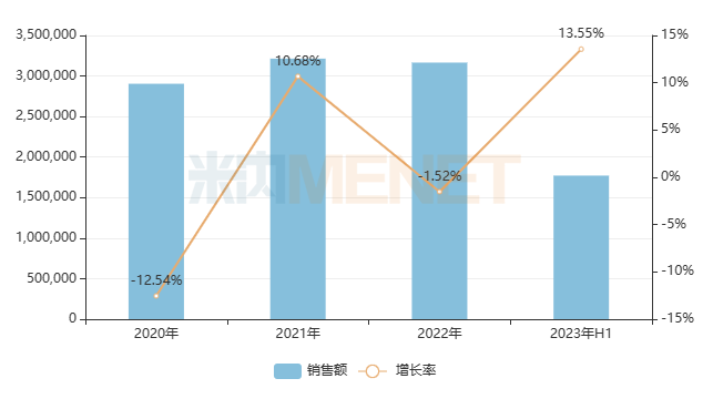 在重点城市公立医院终端(涉及北京、广州、南京等16个重点城市,下同),中成药的销售额规模在2020年创下近五年最低值290亿元,2021年重回300亿水平,2022年微降1.52%,2023年上半年高速回升13.55%,市场跌宕起伏,但总体向好。