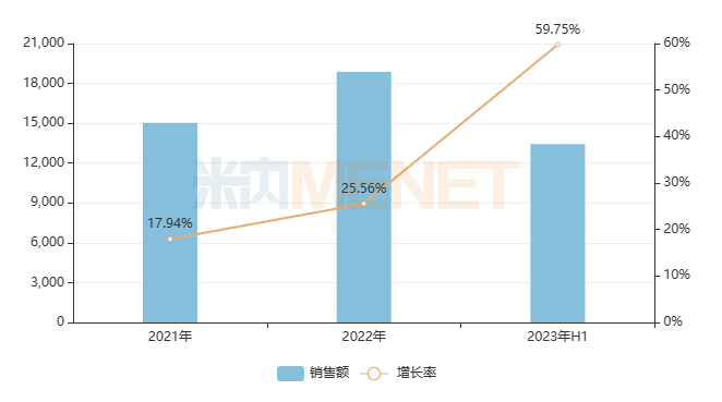 江西青峰药业的独家产品喜炎平注射液是清热解毒用药,近几年在重点城市公立医院终端的销售额起伏不定,2023年上半年增长率高达58.91%,为近五年增速最快的一年,重回中成药TOP8品牌高位。