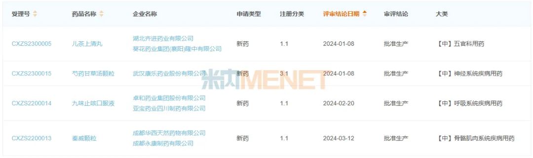 来源:米内网中国申报进度(MED)数据库