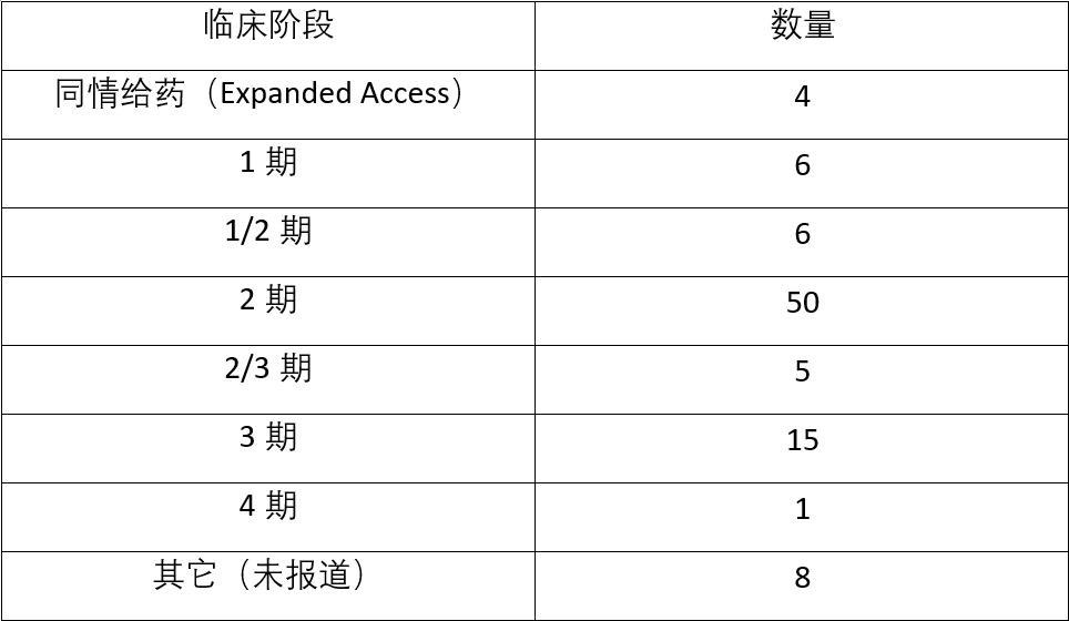 表3显示,93项获得BTD授权的申请中,大多数申请发生在2期(n=50)或3期(n=15)临床。