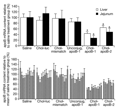 siRNA对野生型小鼠apoB mRNA的体内沉默效果[12]