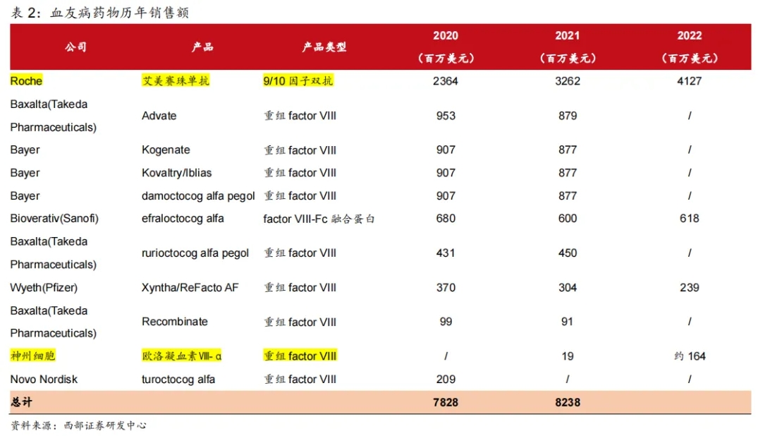 目前,国内获批的血友病药物主要为重组凝血八因子,且以进口产品为主,其中神州细胞凭借国产首个重组八因子安佳因(重组人凝血因子VIII)抢得了一席之地,并且在首个完整销售年度即成为销售额10亿量级的市场重磅产品。