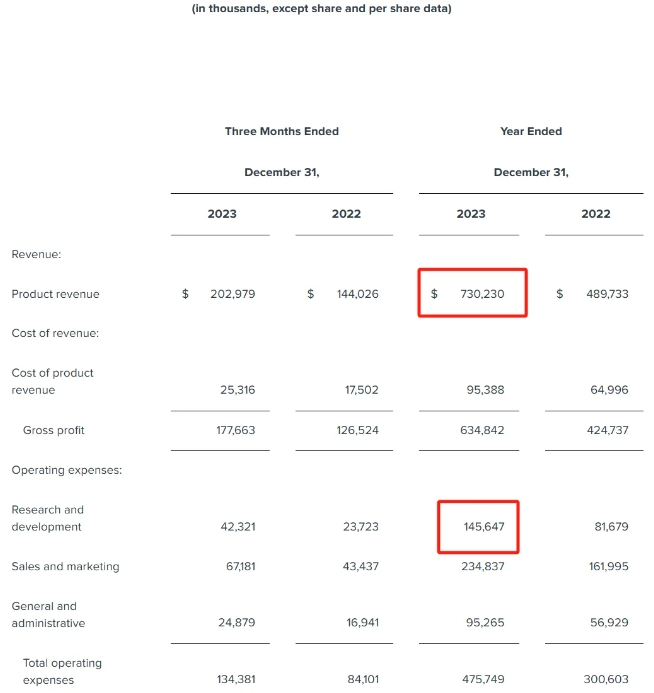 不过,相应的,其研发投入增长了77%至1.46亿美元;整体运营花费增长+59%至4.76亿美元。
