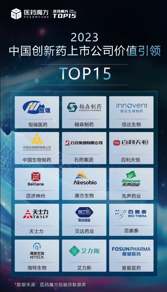 因此,医药魔方特别发布首个“2023中国创新药上市公司价值引领TOP15”榜单。