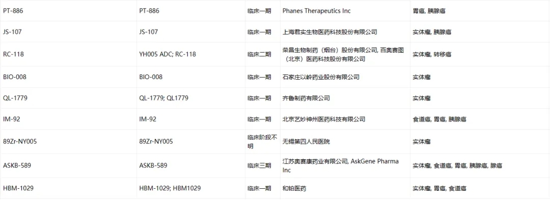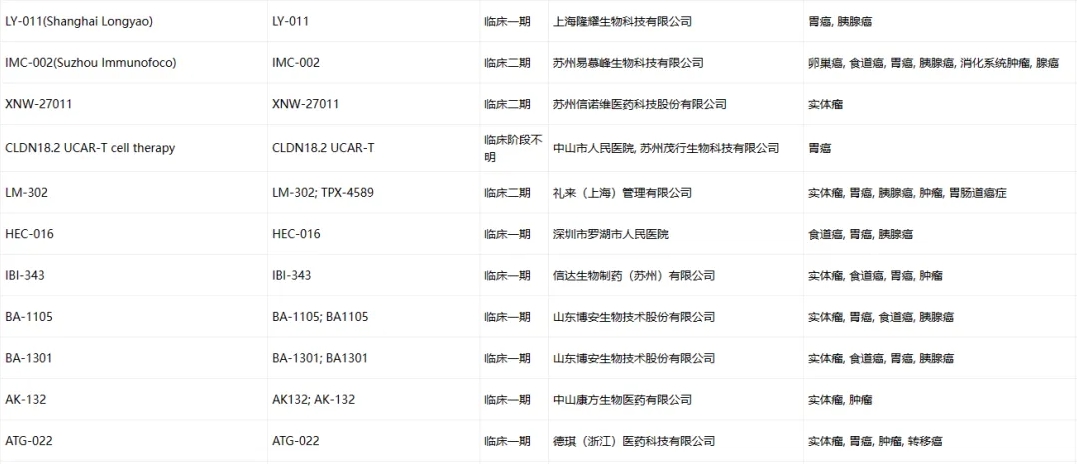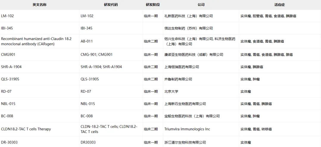 Claudin-18.2临床药物信息