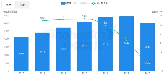 2023等级医院口服降糖药销售约187亿