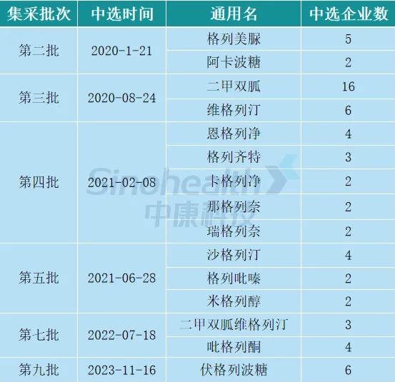 口服糖尿病药各批次集采情况