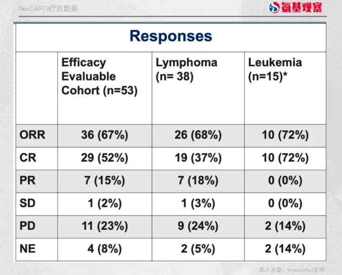 安全性方面,NexCAR19因ICANS的缺失、细胞减少的持续时间较短以及3/4级CRS的发生率较低。