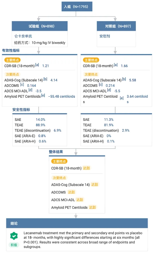 Clarity AD 研究显示,仑卡奈单抗的治疗达到了主要终点和所有关键的次要终点,结果具有显著统计学意义,且证实了仑卡奈单抗的临床获益。