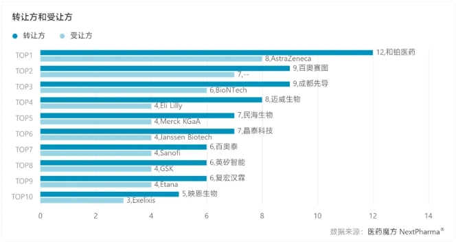 如果将时间拉长至2021至2023年三年时间,在217项的BD出海交易里,和铂医药以12笔交易位列授权转让方第一名。从有披露交易金额的BD交易来看,和铂医药总交易金额达25.74亿美元。