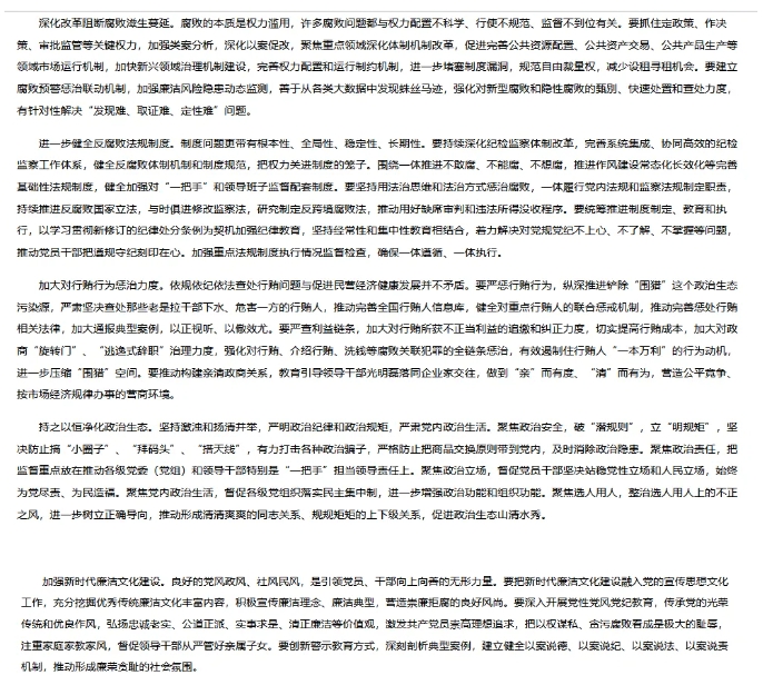 与此同时,文章强调“加大对行贿行为惩治力度”。推动完善全国行贿人信息库,健全对重点行贿人的联合惩戒机制,推动完善惩处行贿相关法律,加大通报典型案例;严查利益链条,加大对行贿所获不正当利益的追缴和纠正力度,切实提高行贿成本等。