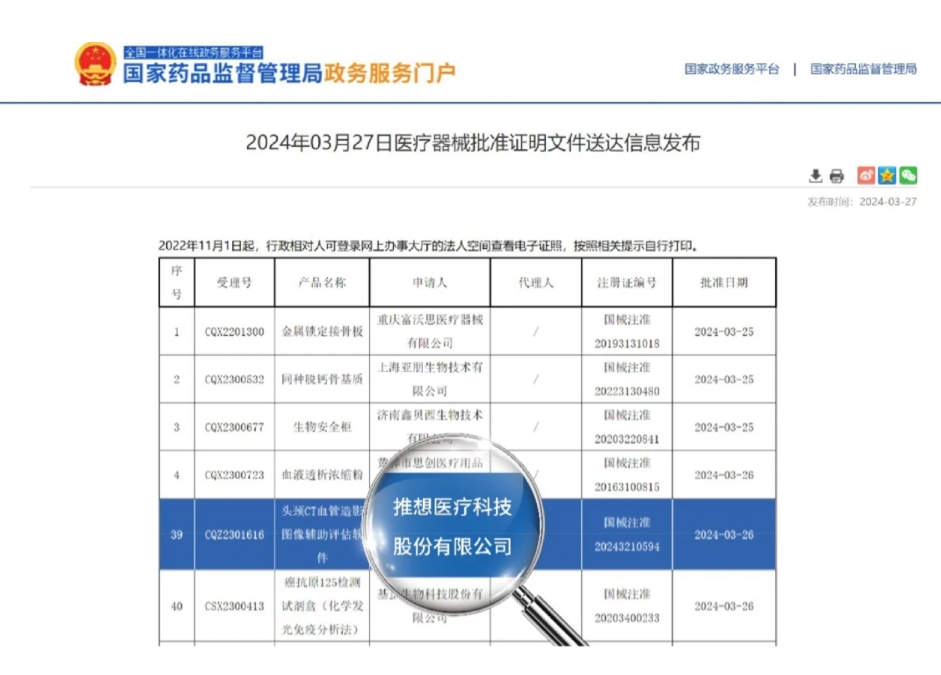 需要注意的是,此次获批的推想医疗科技产品头颈CT血管造影图像辅助评估软件由武汉大学中南医院徐海波主任牵头开展,采用盲态、多中心的临床试验完成了产品的有效性和安全性验证。