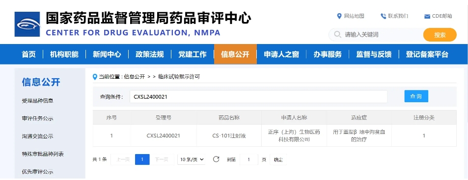 2024年4月2日,专注于新型基因编辑技术的创新生物医药科技企业正序生物(上海)自主研发的针对β-地中海贫血症的碱基编辑药物“CS-101注射液”成功获得国家药品监督管理局(NMPA)的临床试验默示许可(受理号:CXSL2400021)。这是中国首个针对β-地中海贫血症的碱基编辑创新疗法。正序生物计划近期依据国家药品相关法规和要求开展I期临床试验(www.clinicaltrials.gov,注册号:NCT06291961)。