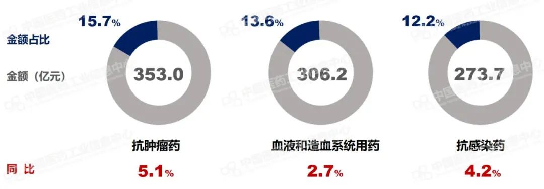 图2:2023年样本医院销售金额TOP 3的治疗大类 来源:PDB药物综合数据库,中国医药工业信息中心
