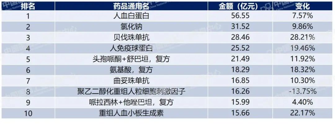 图3:2023年样本医院TOP10品种销售情况 来源:PDB药物综合数据库,中国医药工业信息中心