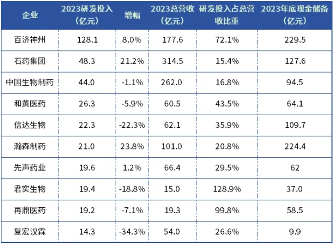截至2023年12月底,瀚森制药现金及银行存款224.4亿元,如果以其目前的研发投入来计,现金储备至少可以维持10年的研发,或许也正是其财大气粗的状态,瀚森制药2023年研发投入增加到21亿元,同比增幅23.8%。