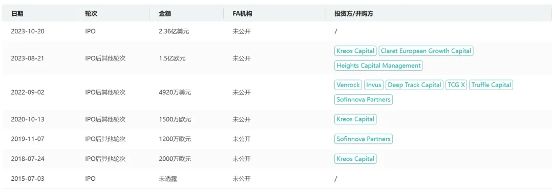 从药融云数据库获悉,创立于2013年12月的Abivax Sa总部位于法国,主要专注于开发创新药物疗法,利用人体的自然调节机制来调节慢性炎症性疾病患者的免疫反应。虽然公司目前只有一个处于临床试验阶段的研发药物,但是目前正在开发其针对多个适应症,且在寻机扩大公司的研发管线。自成立以来公司完成了多轮融资,虽然之前的融资都只能算“小交易”,但是从2022年开始,融资金额就以几倍增长,2023年更是在短时间完成两轮上亿美元交易,并在10月份20日IPO上市。