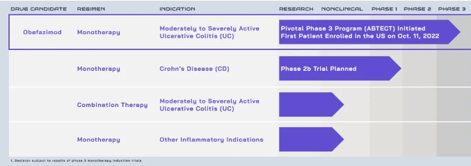 obefazimod联合治疗:根据其早期临床特征,评估口服和注射候选药物联合治疗obefazimod治疗UC的正式过程正在进行中,预计在2024年下半年提供临床前数据以支持联合药物的决策。