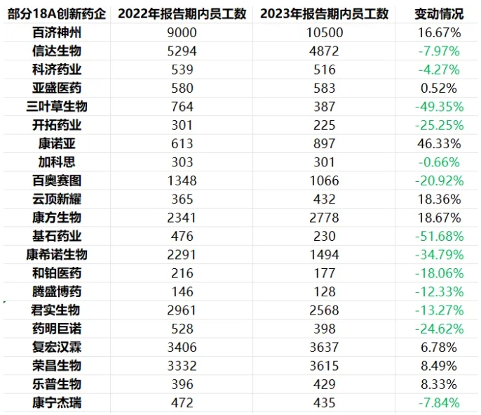 港股18A药企完成年报披露后,A股生物医药板块上市公司也开始放成绩单,将过去一年医药行业的浮沉跌宕尽数摆在眼前。令人挂心的除了各项财务细节,还有一个容易被忽略但很重要的数据:员工数量。