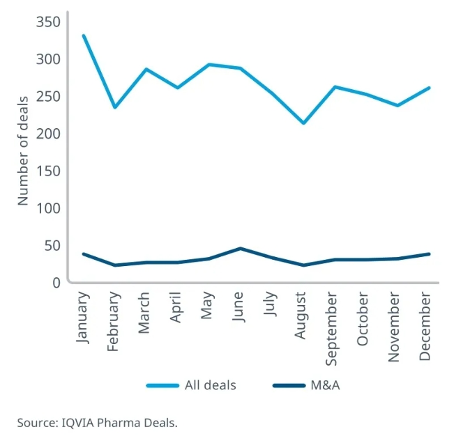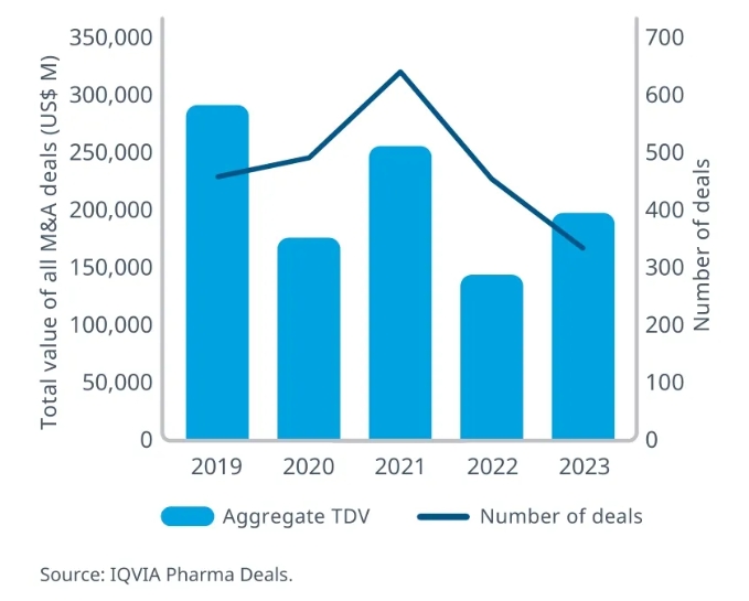 尽管2023年生命科学领域的交易量增速持续放缓,但许多行业观察家对2024年预期交易量仍持谨慎乐观态度,希望这将是交易更加活跃的一年。尽管市场仍存在一些不确定性,但交易活动的主要驱动因素依然存在,包括专利到期日的快速临近和激烈的创新竞争,这将迫使该领域的主要企业动用庞大的现金储备来补充管线和确保未来的增长动力。