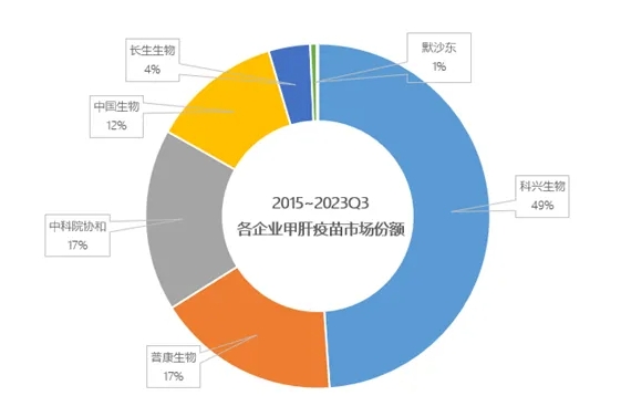 从各企业累计销售数据来看,占据主要市场份额的都是国内企业,科兴生物累计占据了中国市场的半壁江山,而外企甲肝疫苗的市场份额已经降到10%以内。