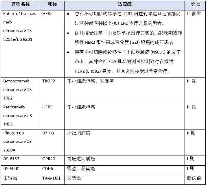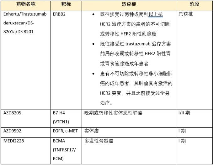 最新动态:2023年10月,第一三共与默沙东签署了价值220亿美元的协议,共同开发3种ADC并将其商业化:patritumab deruxtecan (HER3-DXd)、ifinatamab deruxtecan(I-DXd) 和raludotatug deruxtecan (R-DXd)。