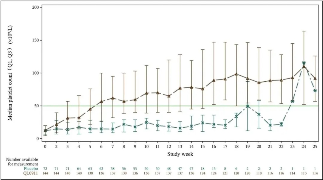 去年 12 月,齐鲁制药注射用罗普司亭(QL0911)在一线治疗无效或复发的成人慢性 ITP 患者中的 III 期研究结果公布。