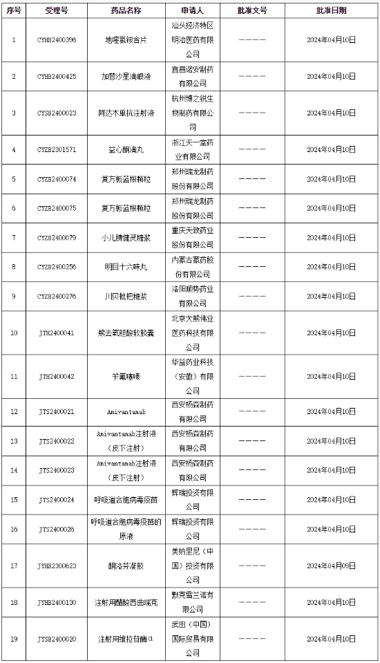 刚刚,国家药监局陆续发布2024年04月11日、12日药品批准证明文件送达信息,这2批次共有35个受理号获批,其中有6个上市申请受理号获批。获批的品种为: