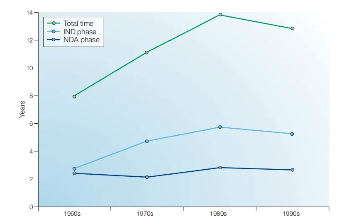 伴随研发成本的不断攀升,药企对于效率的追求也在不断提高。试想一下,24亿美元的研发投入,每晚上市一天可能就是数百万美元的成本损耗,还会面临来自于对手的竞争,因此药企总是将研发效率放在很重要的位置。